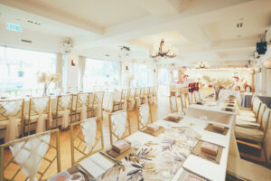 ClubONEK11空中花園是尖沙咀熱門戶外輕婚禮場地,以浪漫Tiffany Blue作為場地主色,搭配花卉長廊佈置,戶外更設有空中花園證婚區,適合舉辦50人至200人的小型婚禮、中西式婚宴酒席、雞尾酒會、午間證婚及晚間婚宴等。