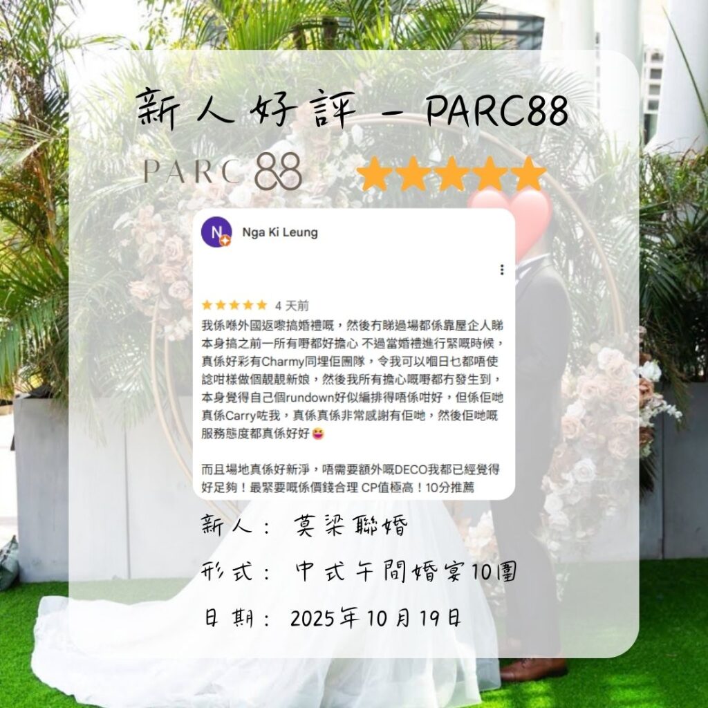 我係喺外國返嚟搞婚禮嘅,然後冇睇過場都係靠屋企人睇 本身搞之前一所有嘢都好擔心 不過當婚禮進行緊嘅時候,真係好彩有Charmy同埋佢團隊,令我可以嗰日乜都唔使諗咁樣做個靚靚新娘,然後我所有擔心嘅嘢都冇發生到,本身覺得自己個rundown好似編排得唔係咁好,但係佢哋真係Carry咗我,真係真係非常感謝有佢哋,然後佢哋嘅服務態度都真係好好😆
