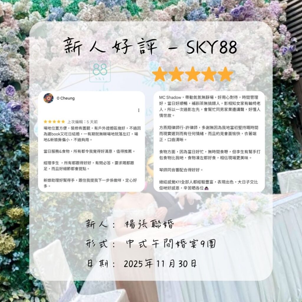 ClubONE SKY88 – 香港輕婚禮小型婚禮場地