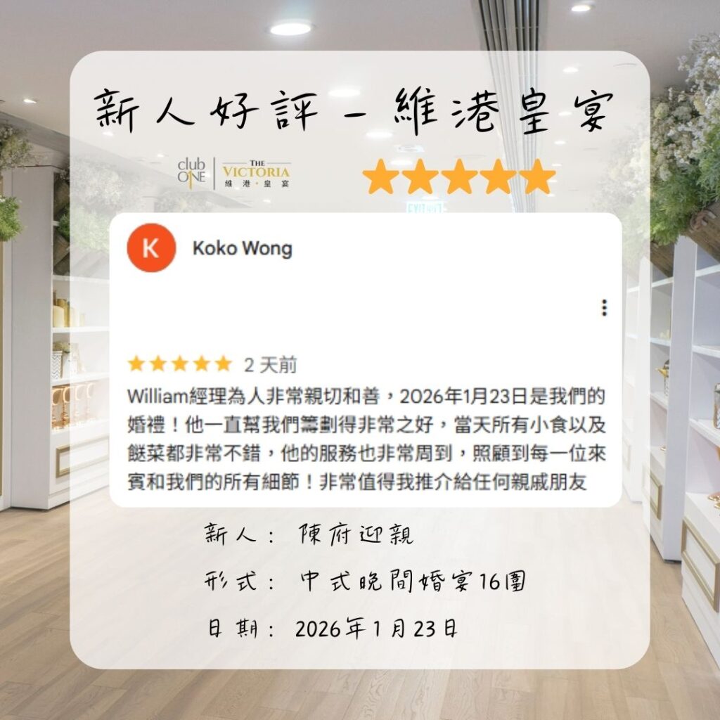 維港皇宴婚禮好評︰「一直幫我們籌劃得非常之好,當天所有小食以及餸菜都非常不錯」— 新人評價陳府迎親