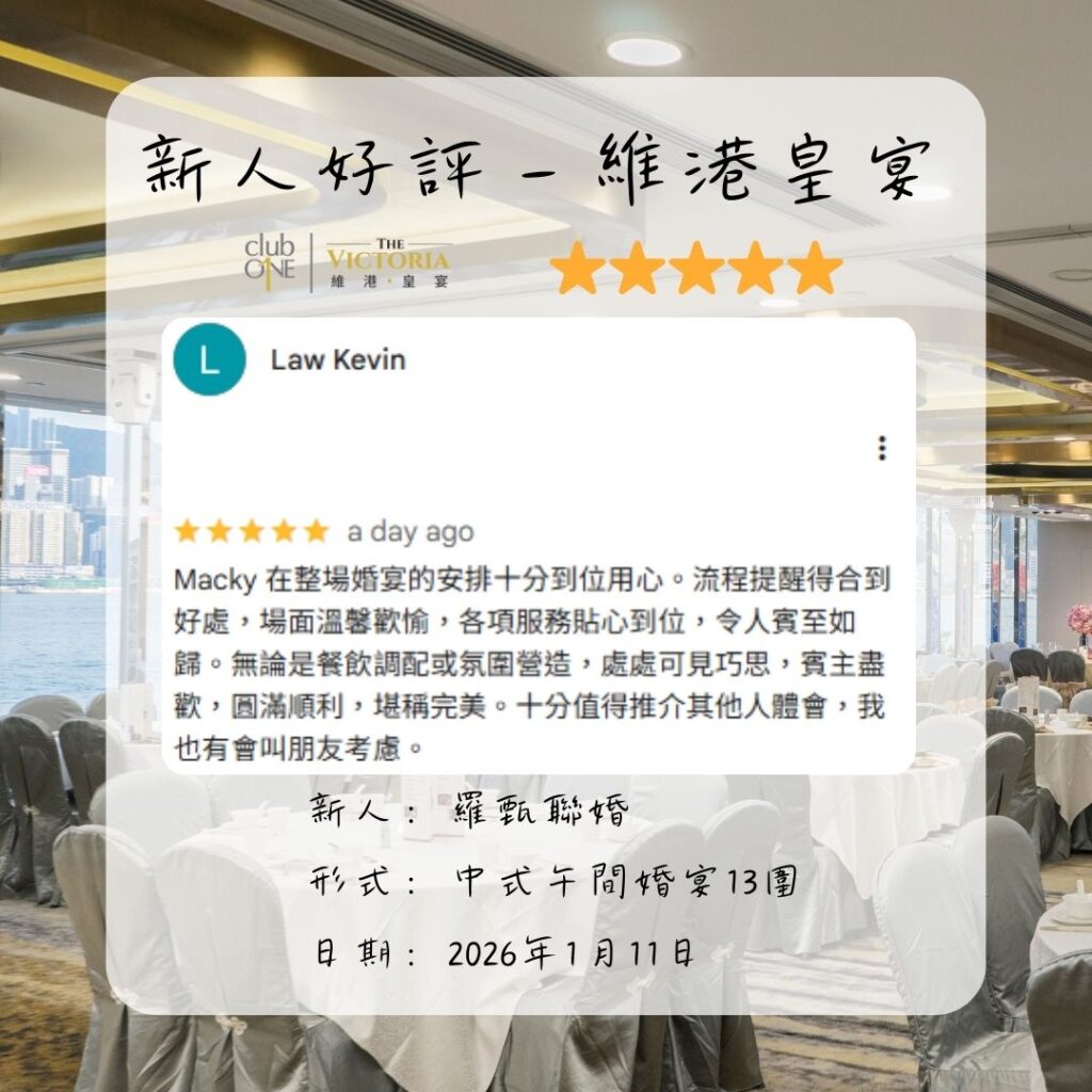 Macky 在整場婚宴的安排十分到位用心。流程提醒得合到好處,場面溫馨歡愉,各項服務貼心到位,令人賓至如歸。無論是餐飲調配或氛圍營造,處處可見巧思,賓主盡歡,圓滿順利,堪稱完美。十分值得推介其他人體會,我也有會叫朋友考慮。