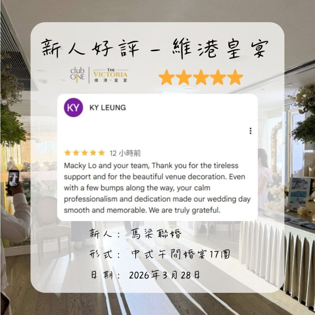 Macky Lo and your team, Thank you for the tireless support and for the beautiful venue decoration. Even with a few bumps along the way, your calm professionalism and dedication made our wedding day smooth and memorable. We are truly grateful.