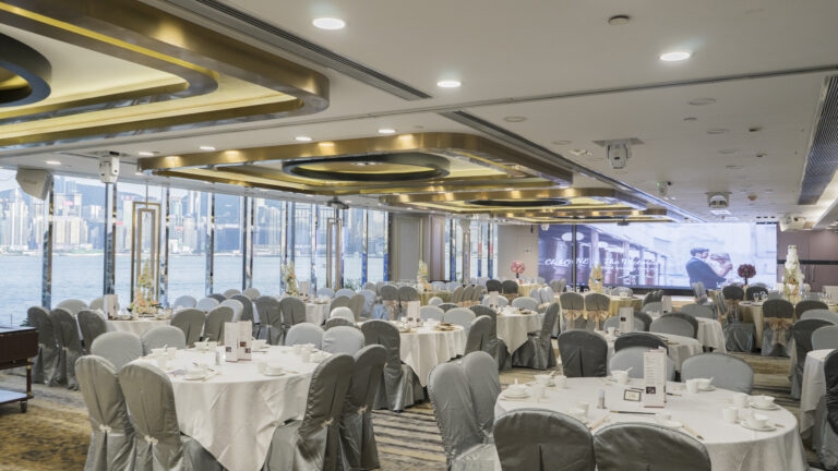 維港皇宴婚禮好評︰「場地長方形狀,勁是正,遠遠都望到台,唔會有柱遮住。再加上有個好靚嘅海景」— 新人評價鍾徐聯婚